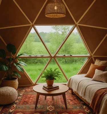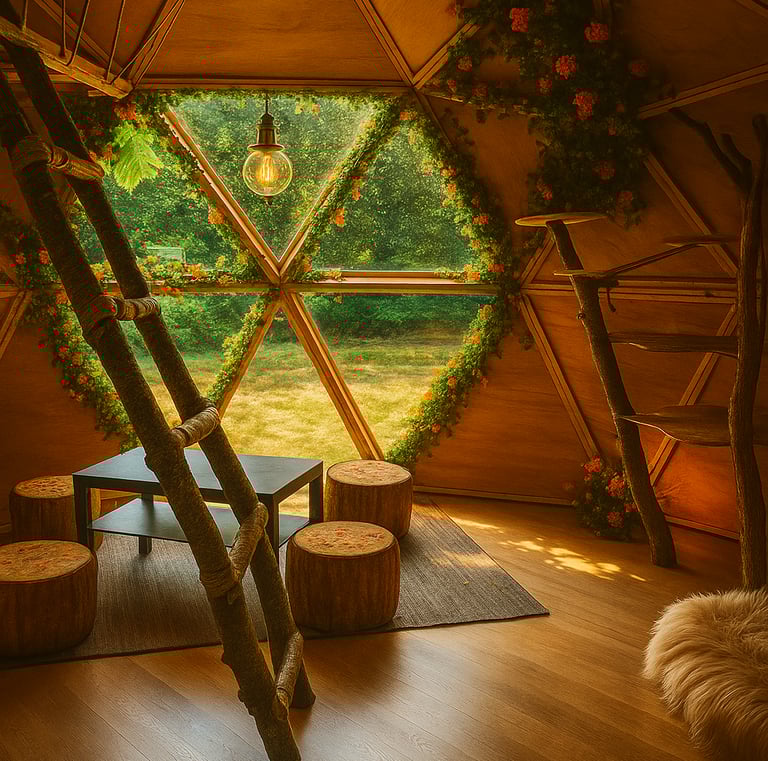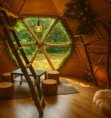 Chez Doma, nous concevons des dômes géodésiques écologiques en bois, parfaits pour des séjours uniques en pleine nature ou comme chambres d'hôtes accueillantes.